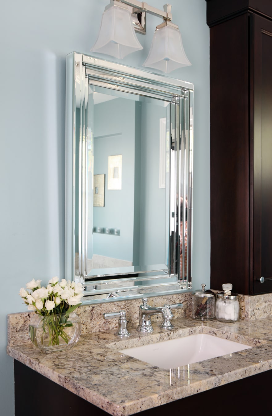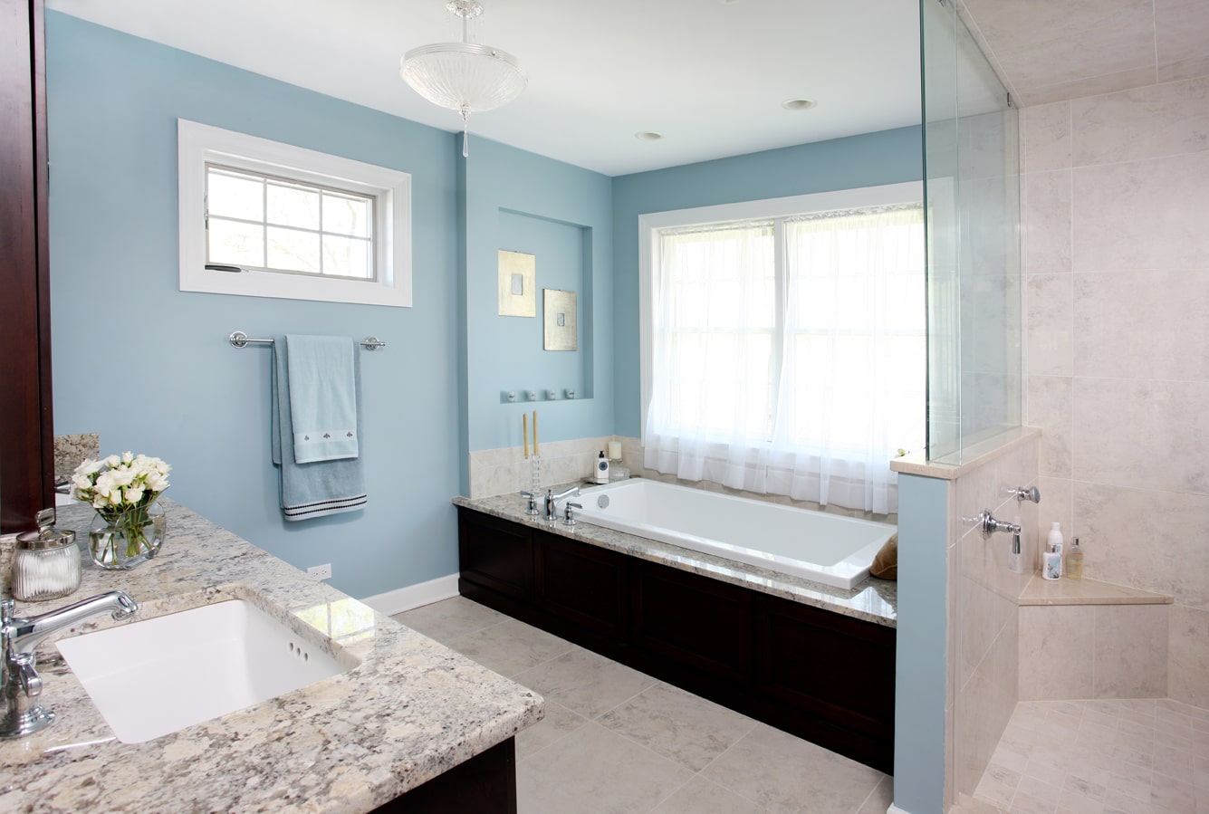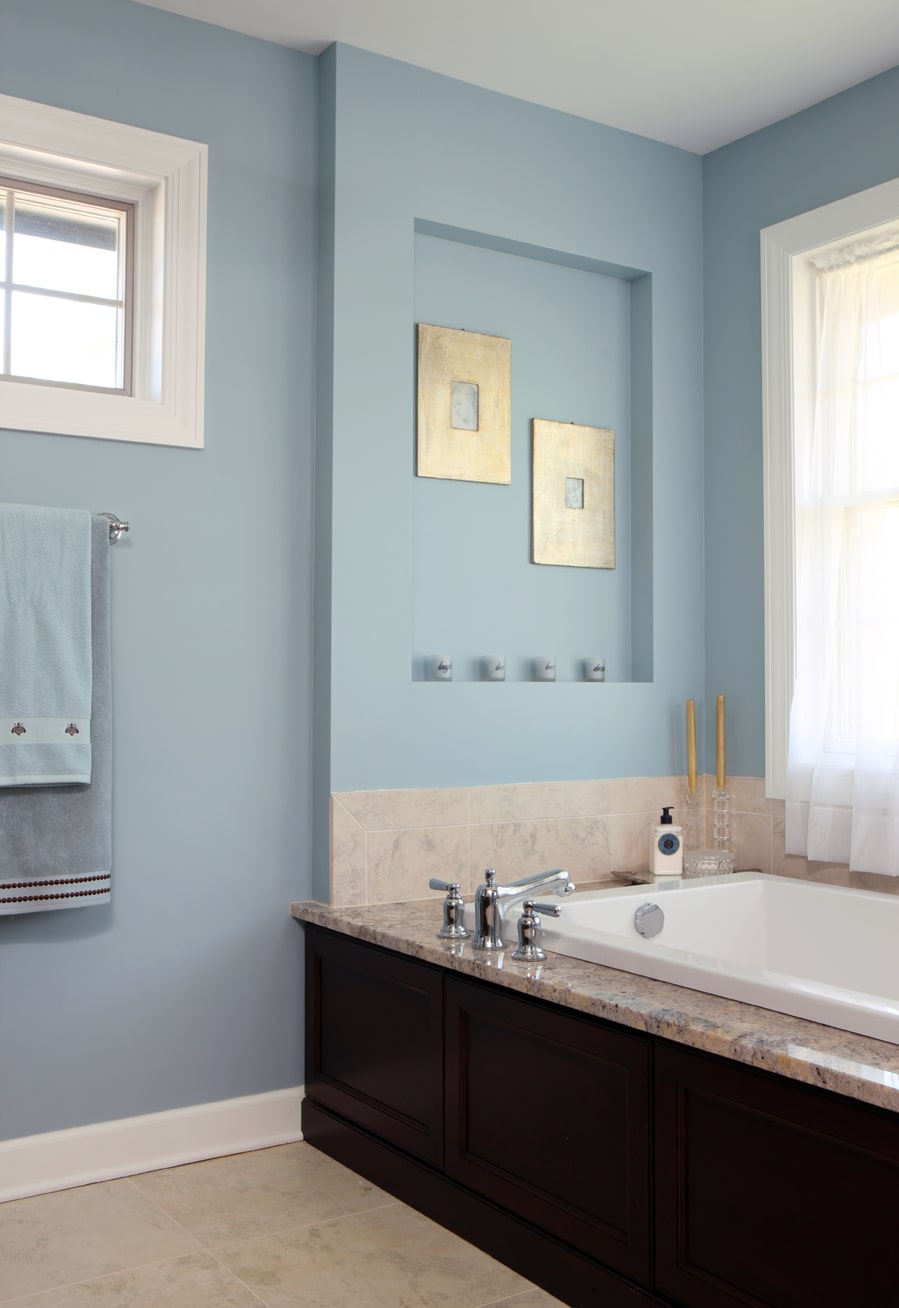 “The homeowner and I decided on a Robin’s egg blue for the walls to add a sense of calmness and serenity to the room, giving the bathroom a spa-like effect,” commented Stephanie.