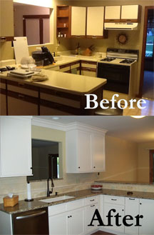 “Expectations – at a minimum we expected that our remodeling would update our kitchen from laminate contertops and floor to granite and wood, outdated cabinets to cabinets with pull-out shelves and drawers.