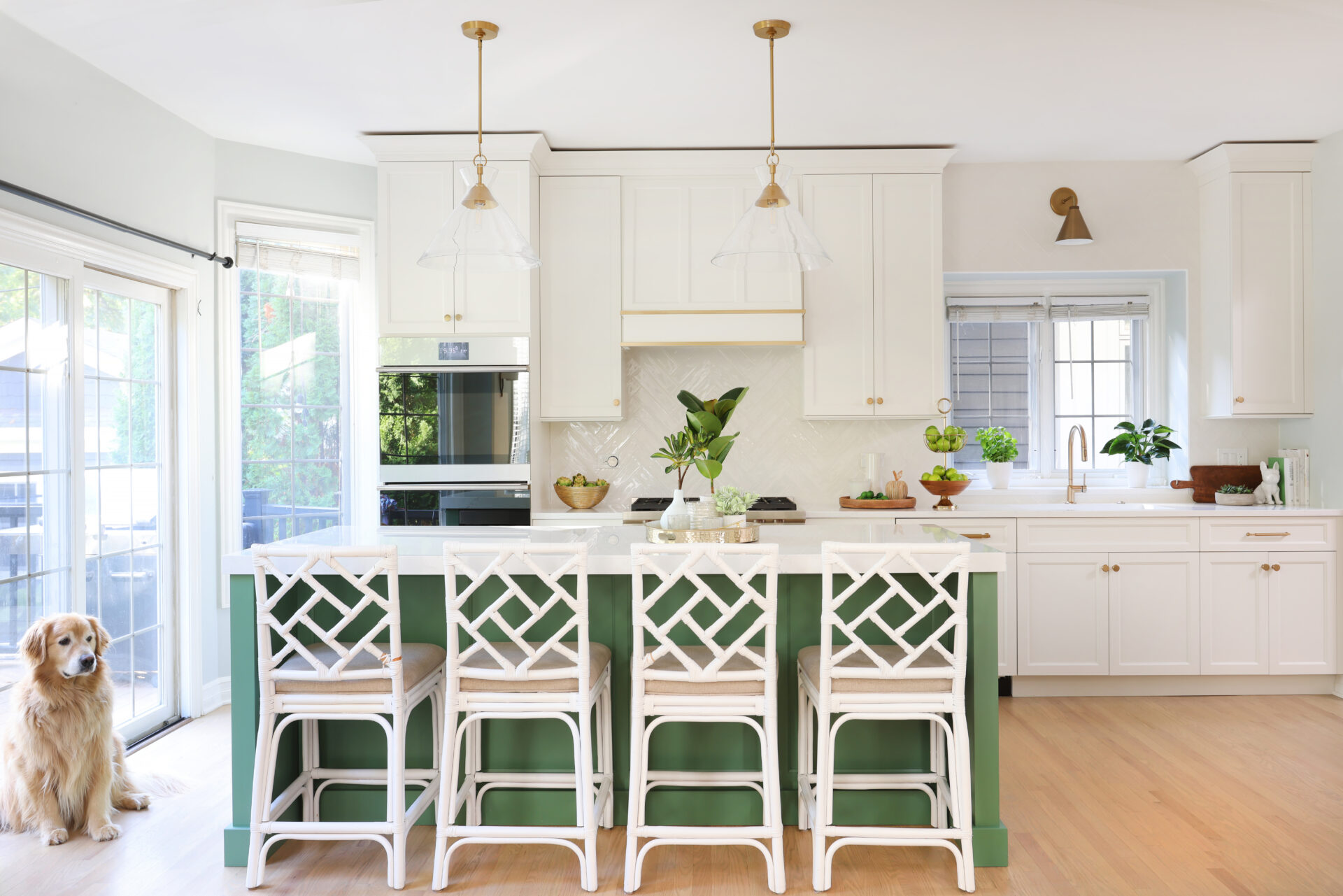 Paired with wood elements, these colors can stay in style for years to come. “A white kitchen with navy island might be considered trendy, but a navy island with some stained cabinets will feel more timeless,” notes Bryan. This more neutral and classic canvas can also pair effortlessly with trending metallics like brushed brass or matte black, as well as with a wide variety of stone and tile.